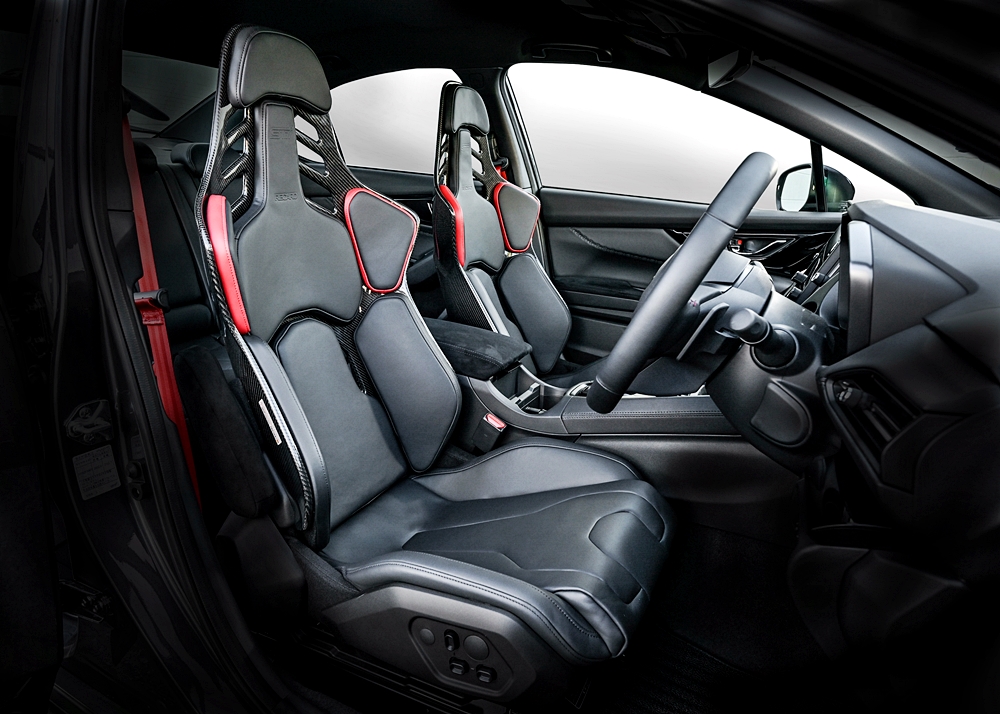 Badan kereta dipasangkan komponen aerodinamik seperti STI Sport Side Garnish dan STI Dry Carbon Rear Spoiler bagi mengatur aliran udara dan untuk pengendalian berprestasi tinggi.