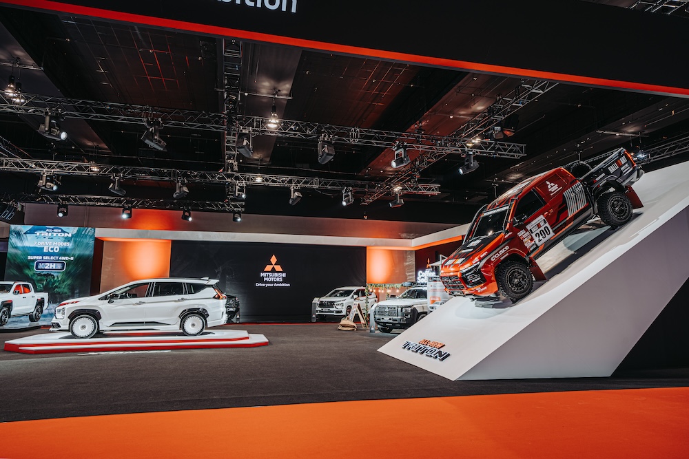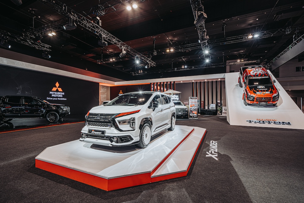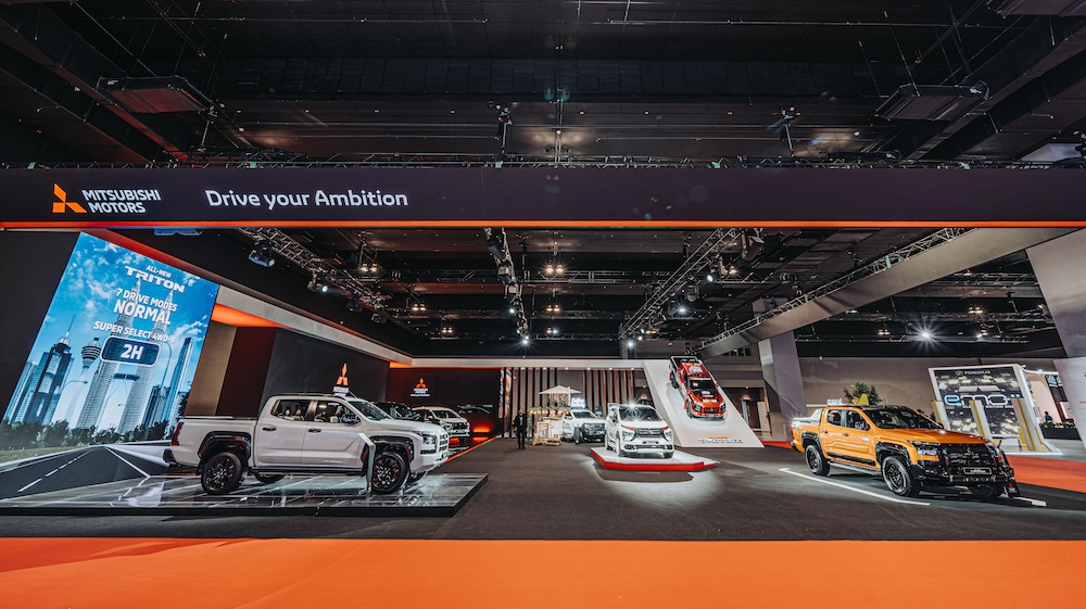 MMM mendirikan reruai bertemakan Drive your Ambition dan mempamerkan kenderaan jenama Mitsubishi di tingkat dua di MITEC Kuala Lumpur.