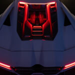 - Bahagian belakang dikhaskan untuk trenkuasa hibrid V12 dengan enjin bujur terdedah penuh yang menampakkan nadi kuasa Revuelto (2023) dan secara visual dilihat bersambung dengan dwi-ekzos heksagon.