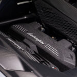 - Kluster lampu utama dengan lampu siang (DRL) bentuk Y memberikan gaya rekabentuk Lamborghini kontemporari tersendiri dalam frem gril bilah aerodinamik yang menyambungkan spliter kepada bonet.