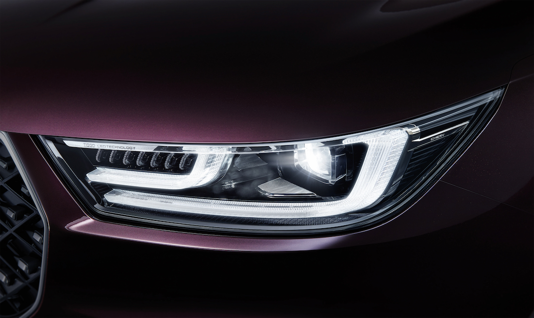 - Mengetengahkan rekabentuk Chery generasi baharu, dipanggil ‘Movement Design’, dengan gril tiga dimensi (3D) yang mengambil ilham galaksi, manakala lampu depan jenis LED matriks automatik dan lampu siang (DRL) kembar.