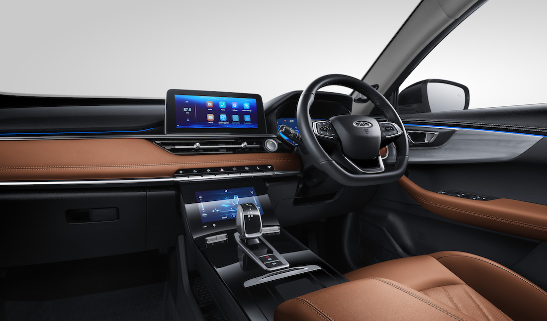 - Menjengah ruang kabin, semua fungsi kenderaan dikawal menerusi tiga skrin, iaitu panel meter rate 12.3 inci, skrin kawalan iklim 8 inci dan unit infotainment skrin apung 10.25 inci dengan ciri Apple CarPlay, Android Auto dan kamera undur.