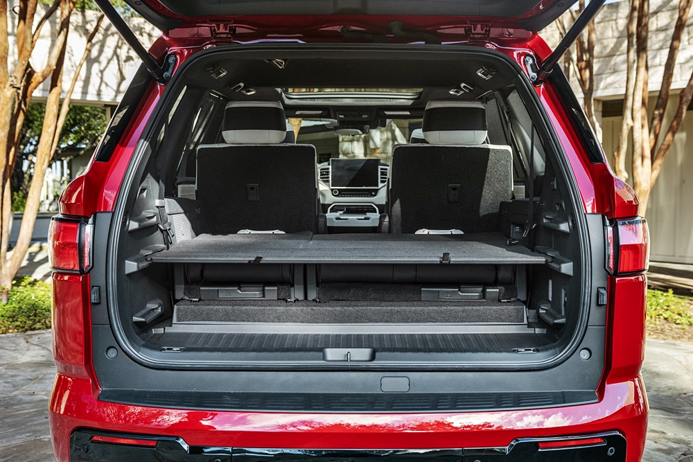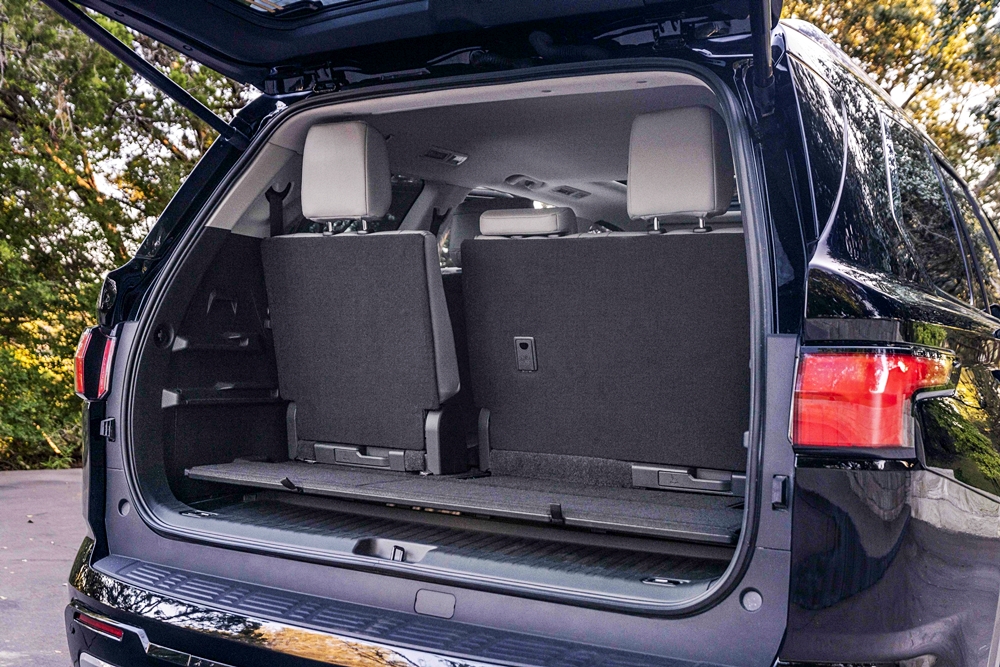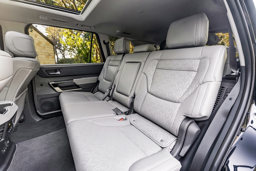 - Kerusi baris ketiga dengan sandaran belakang boleh laras dan anjakan hingga 6 inci untuk tambahan ruang simpanan.