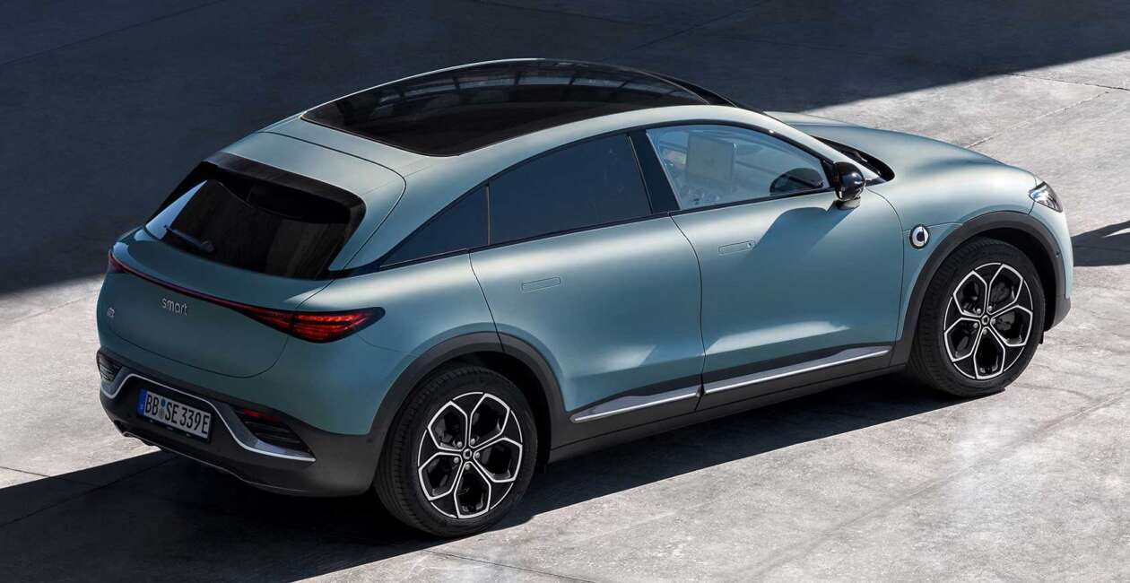 Dari belakang, lampu bersambung dari kanan ke kiri yang juga membawa elemen siri kenderaan elektrik Mercedes-EQ. smart tidak berkongsi spesifikasi teknikal dan dijangka meneruskan penggunaan plaform kenderaan elektrik Sustainable Experience Architecture (SEA) yang dibangunkan Geely.