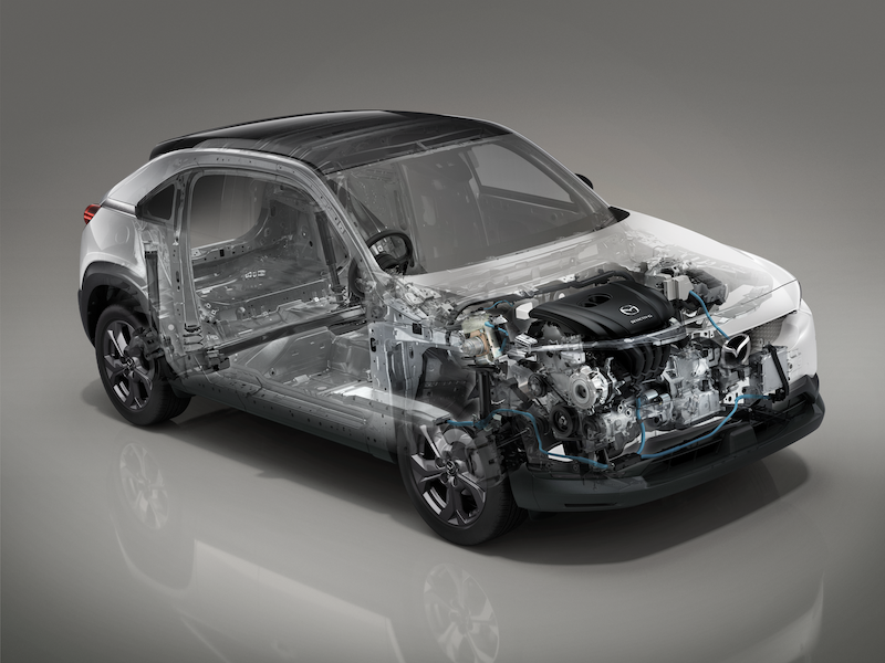- MX-30 ialah kenderaan BEV dengan Motor Segerak Magnet Kekal (Permanent Magnet Synchronous Motor - PMSM).