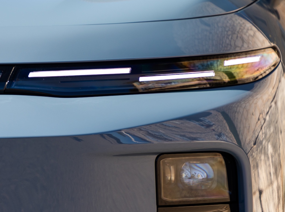 - Lampu utama LED penuh dengan lampu siang (DRL) gaya dam (chequered flag)