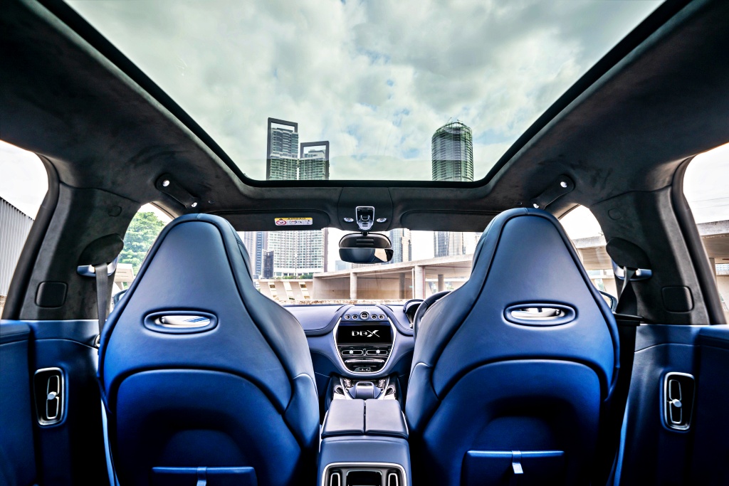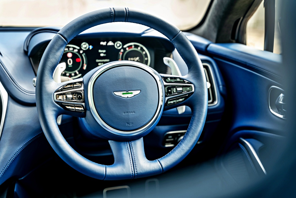Menjengah ruang kabin, SUV 5-kerusi ini dihiaskan unit infotainment skrin sentuh TFT 10.25 inci dan kluster instrumen TFT 12.3 inci untuk pemandu. Keseronokan memandu diceriakan sistem audio premium Aston Martin dengan 14 pembesar suara 800 watt dan dilengkapkan konektiviti Apple CarPlay sebagai standard.