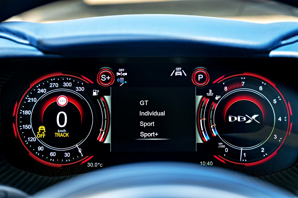 Pengendalian dinamik diserahkan kepada suspensi udara volum adaptif ganda yang digabungkan sistem kawalan antirol elektrik (48V eARC) terkini dan absorber adaptif elektronik. Kemampuan meningkatkan ketinggian pemanduan kepada 45mm dan 50mm (rendah) memberikan keyakinan kepada pemandu DBX untuk meredah apa jua cabaran rupa bumi.