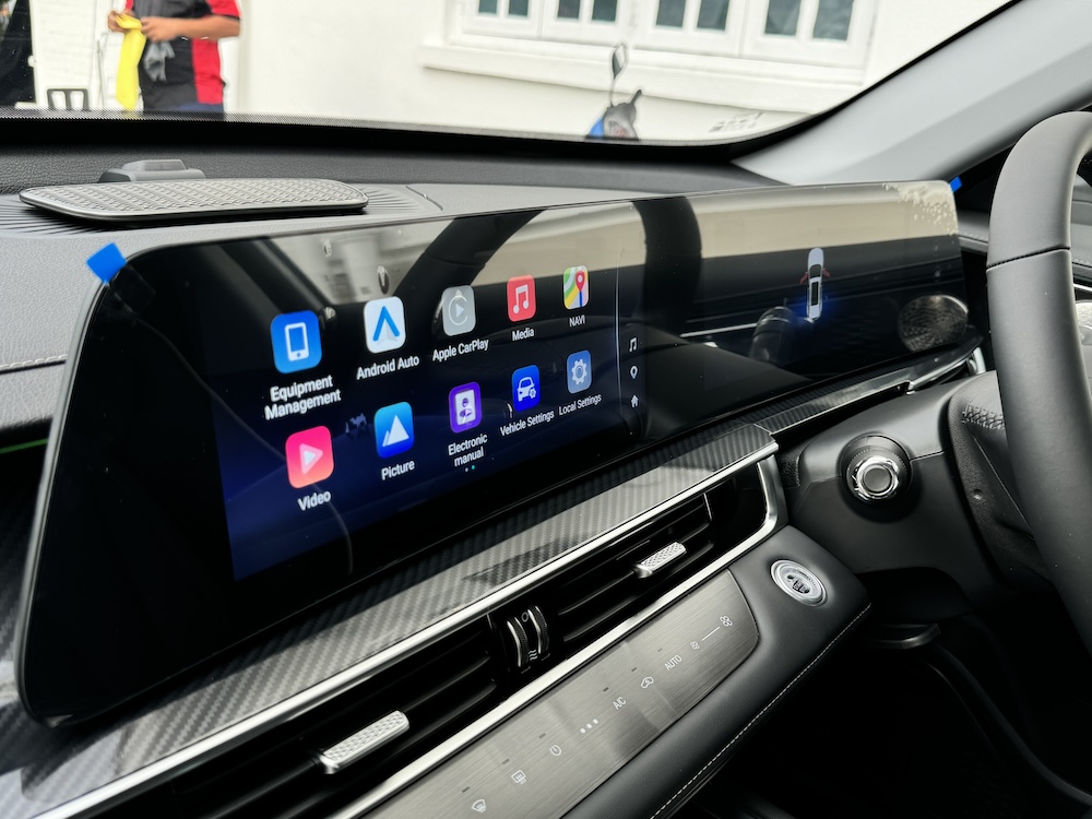 - Sistem infotainmen dwi-skrin 24.6 inci jenis melengkung dengan konektiviti Apple CarPlay dan Android Auto.