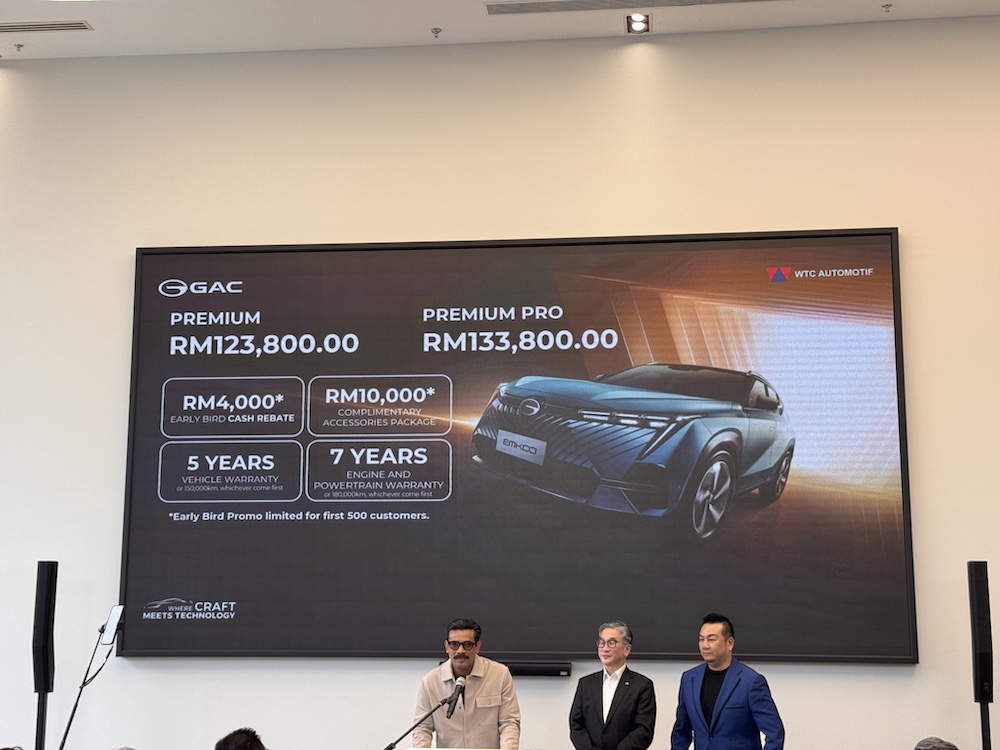 PENGEDAR rasmi kenderaan GAC di Malaysia, WTC Automotif (M) Sdn Bhd (WTCA) hari ini secara rasmi melancarkan kenderaan utiliti sukan (SUV) segmen-C, GAC EMKOO 2025 pada harga bermula RM123,800 untuk varian Premium dan RM133,800 untuk Premium Pro.