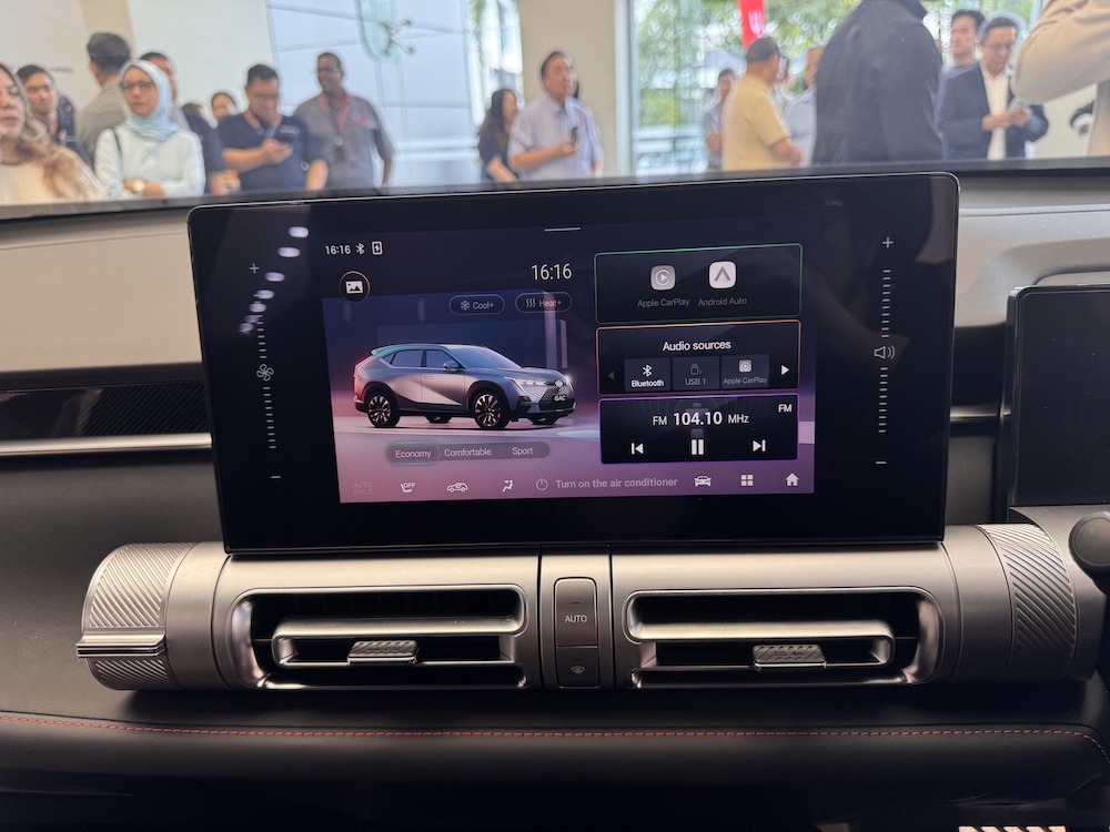 - Unit infotainmen skrin sentuh 10.1 inci dengan konektiviti Apple CarPlay dan Android Auto wayarles