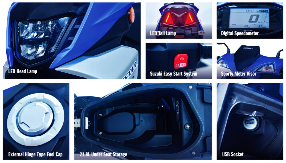 Suzuki Avenis pula direka untuk gaya hidup dinamik penunggang muda masa kini yang menggabungkan prestasi, keselesaan dan teknologi terbaik seperti skrin LCD dengan paparan intuitif dan lampu indikator eko untuk operasi cekap bahan api.