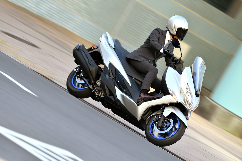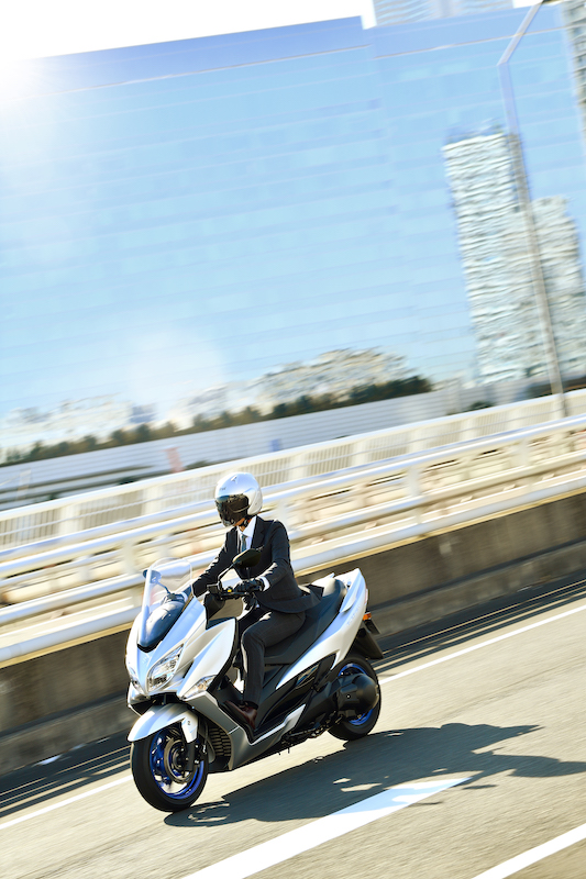 - Menampilkan konsep Burgman Coupe dengan rekabentuk badan langsing yang mudah ditunggang dalam laluan trafik sesak.