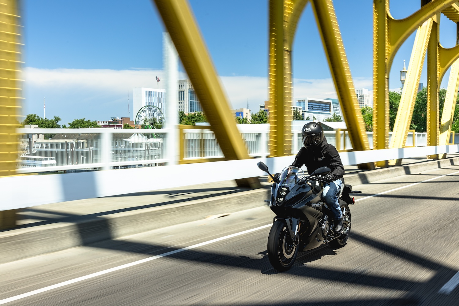 - Brek cakera kembar 310mm dengan kaliper 4-piston (depan), cakera tunggal 240mm dengan kaliper piston tunggal (belakang). Sistem ABS sebagai ciri standard.