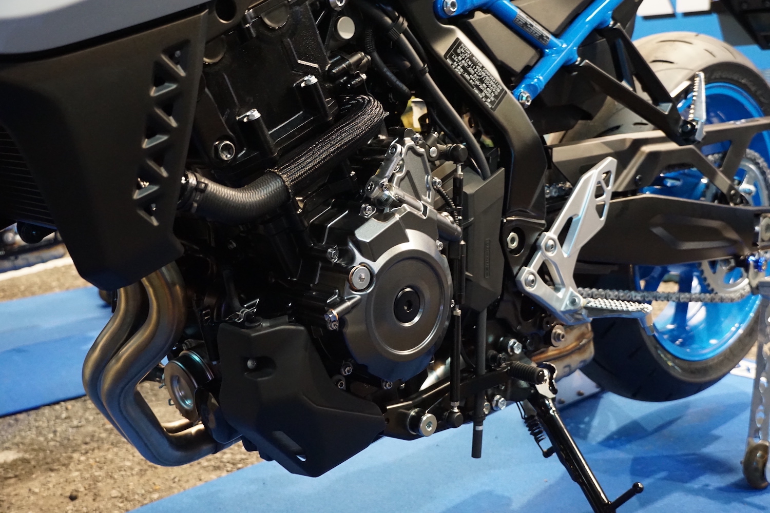 Trenkuasa 4-lejang 8-injap 270º dwi-silinder sebaris 776cc DOHC penyejukan cecair dengan teknologi suntikan bahan api (FI) berkuasa 83hp @ 8,500rpm, dan tork 78Nm @ 6,800rpm.