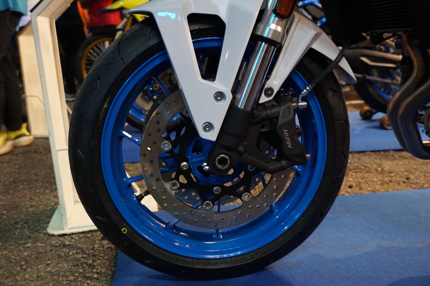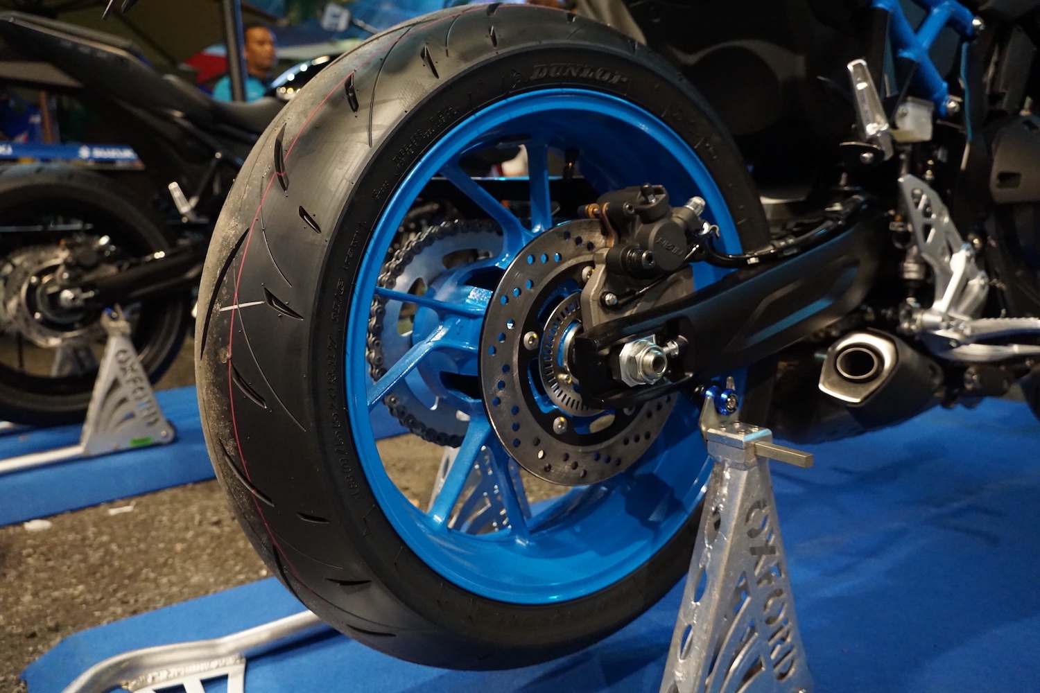 Bahagian roda menggunakan rim aluminium 17 inci dengan tayar Dunlop Sportmax Roadsport 2 saiz 120/70 (depan), dan 180/55 (belakang).