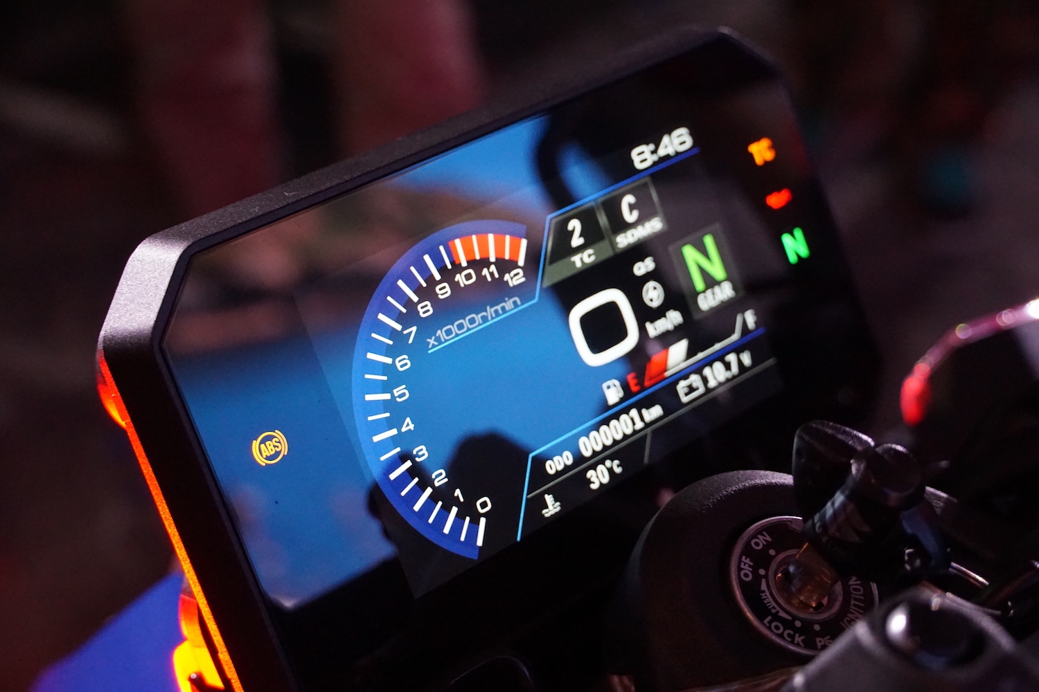 Panel meter digital LCD TFT 5 inci berwarna dan sistem lampu LED menjadi ciri standard, tetapi lampu signal belok masih mentol halogen.