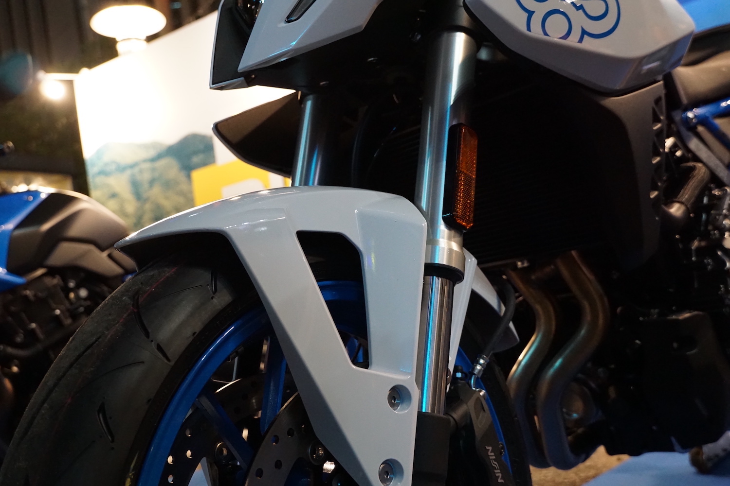 Sistem brek cakera kembar 310mm dengan kaliper Nissin 4-piston (depan), dan cakera tunggal 240mm dengan kaliper piston tunggal (belakang). Sistem ABS dibekalkan sebagai standard.