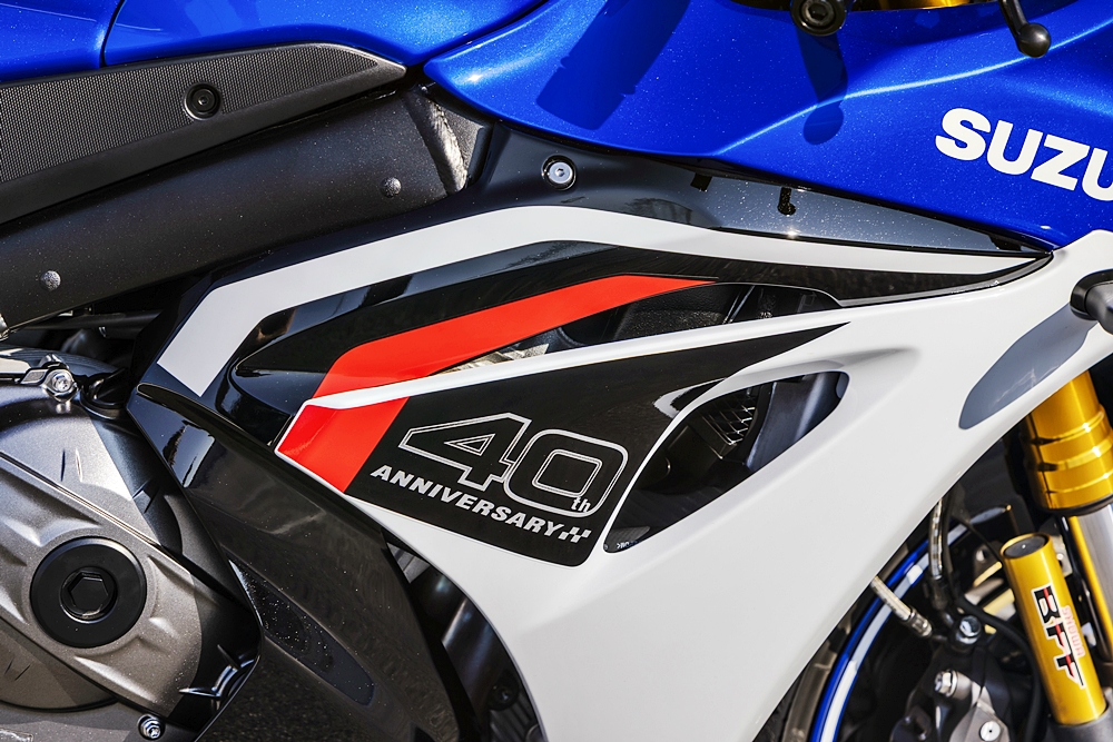 Setiap model menampilkan grafik ulang tahun ke-40 pada fairing dan tangki bahan api, berserta logo R retro pada kowl enjin. Logo GSX-R dapat dilihat pada pelana dan silenser ekzos, manakala penutup magnet dan klac dalam kemasan kelabu. Superbike itu dijangka tiba di pengedar seluruh Britain menjelang musim bunga (Mac-Mei) 2026.