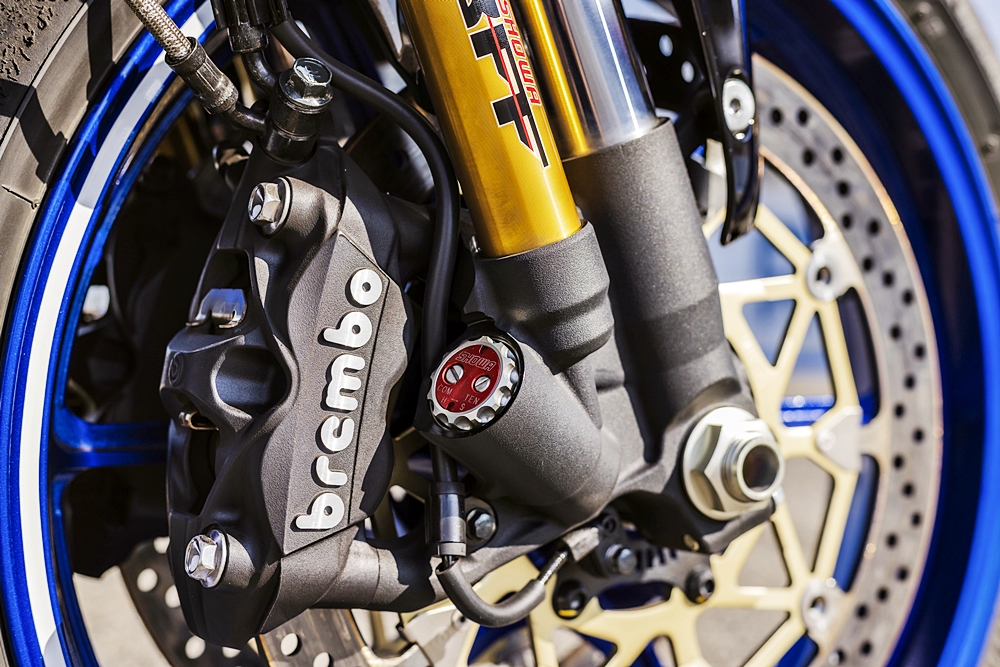 Sistem Brek Anti-Kunci (ABS) baharu turut diperkenalkan yang 51 gram lebih ringan berbanding model terdahulu. Rim aluminium tuang ringan dibalut tayar Bridgestone BATTLAX RACING STREET RS11 bersaiz 120/70Z R17 M/C di depan, dan 190/55Z R17 M/C (belakang).
