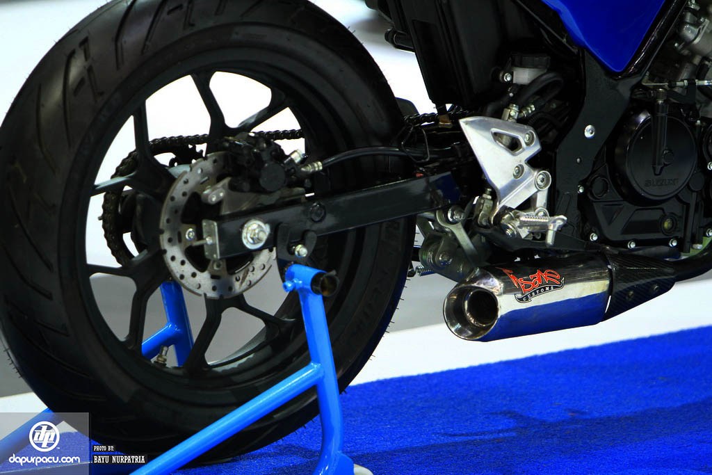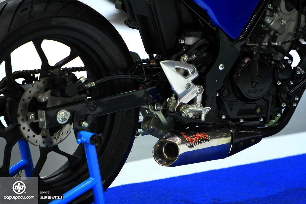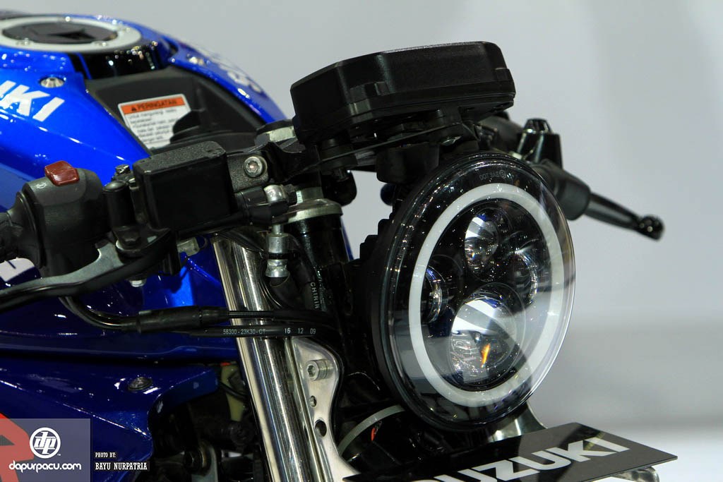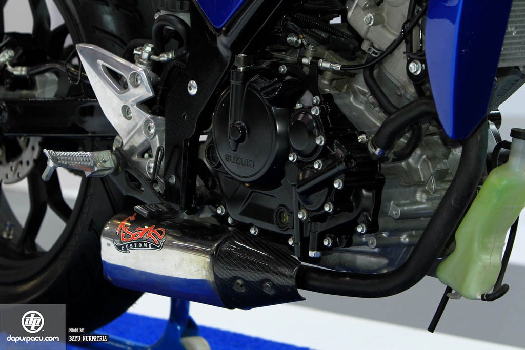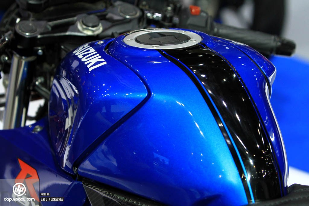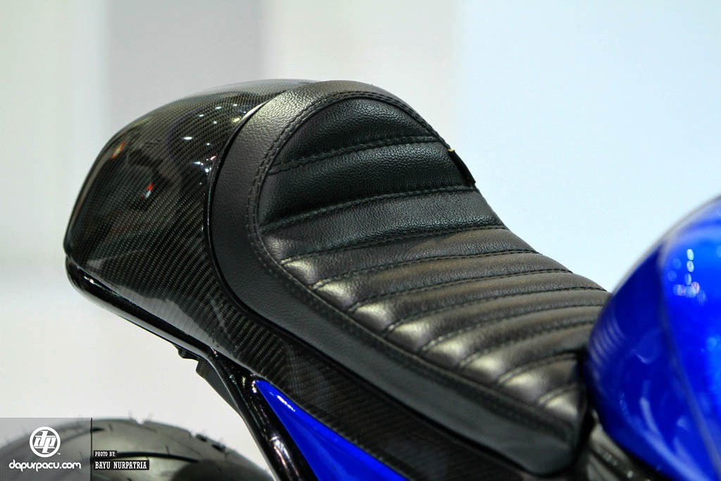 Selepas dibogelkan, Suzuki GSX-R150 Cafe Racer itu kemudian dipasangkan pula penutup tepi daripada plat galvani 1.2mm pada bawah tangki dan tempat duduk, manakala tona badan disimbah warna signatur Suzuki, yakni biru.