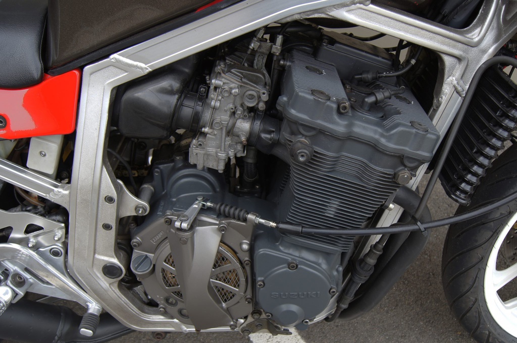 SUZUKI GSX-R750 (1986) boleh dianggap sebagai contoh motosikal dengan kejuruteraan tipikal Suzuki yang menggunakan teknologi pengeluaran frem aluminium.