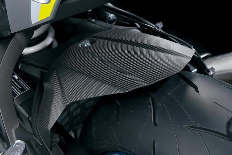- Madgad depan dan belakang daripada gentian karbon, menggantikan komponen plastik sedia ada.