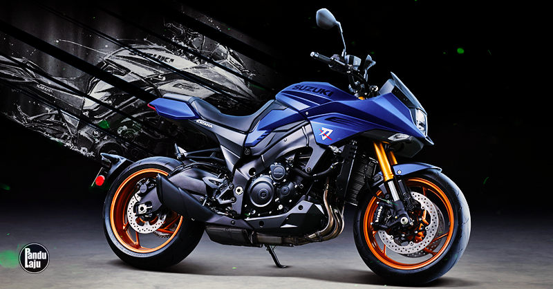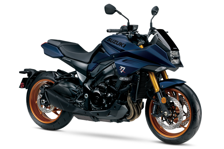 Suzuki Katana (2024) Edisi Terhad itu hadir dalam skema warna Metallic Matte Stellar Blue (biru kusam) dengan unit fork dan set rim aloi emas.