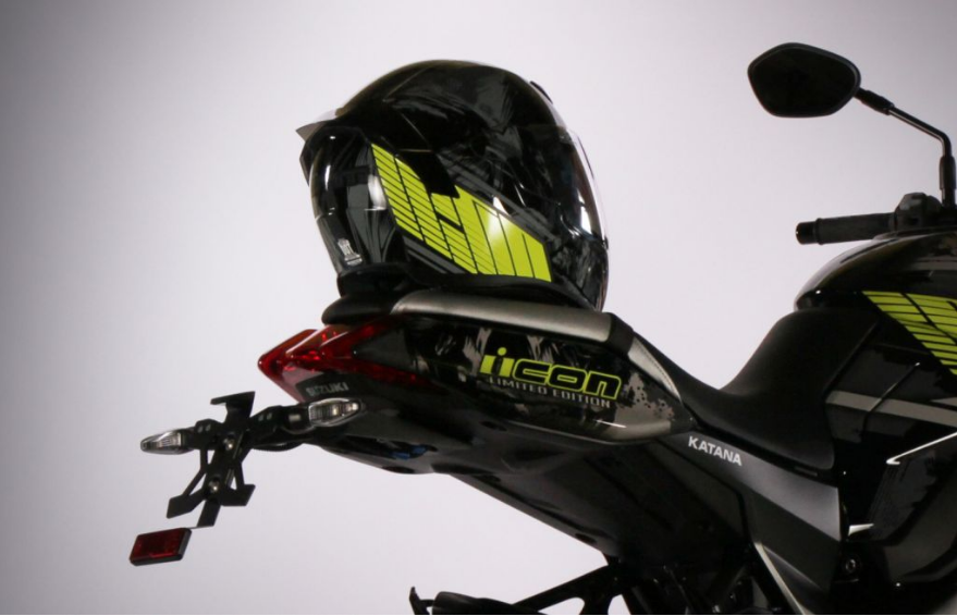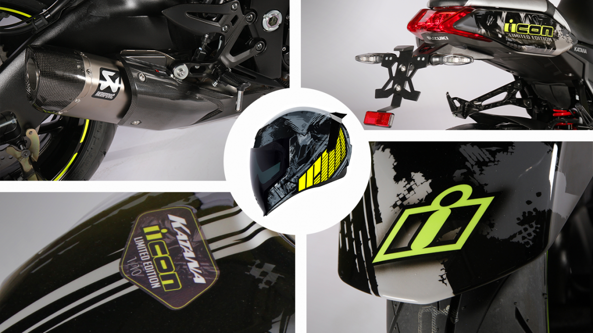 Hanya 10 unit Katana Icon ditawarkan di Perancis yang dipakej bersama helmet muka penuh, Airflite Stim Black Icon bernilai AS$290 (RM1,180). Kemasan grafik pada helmet direka sama seperti badan Katana.