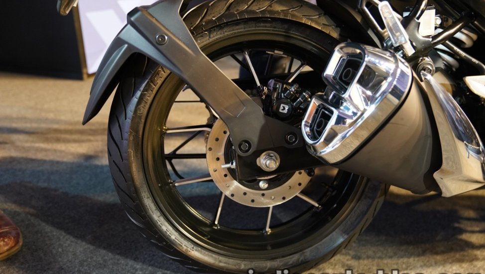 Sistem suspensi dipasangkan fork teleskopik di depan dan monoshock pautan swingarm di belakang. Bahagian roda menggunakan rim aloi 5 jejari 17 inci dengan tayar 110/70 di depan dan 150/60 di belakang. Kuasa henti digalas brek cakera di roda depan dan belakang dengan ABS dual-saluran.