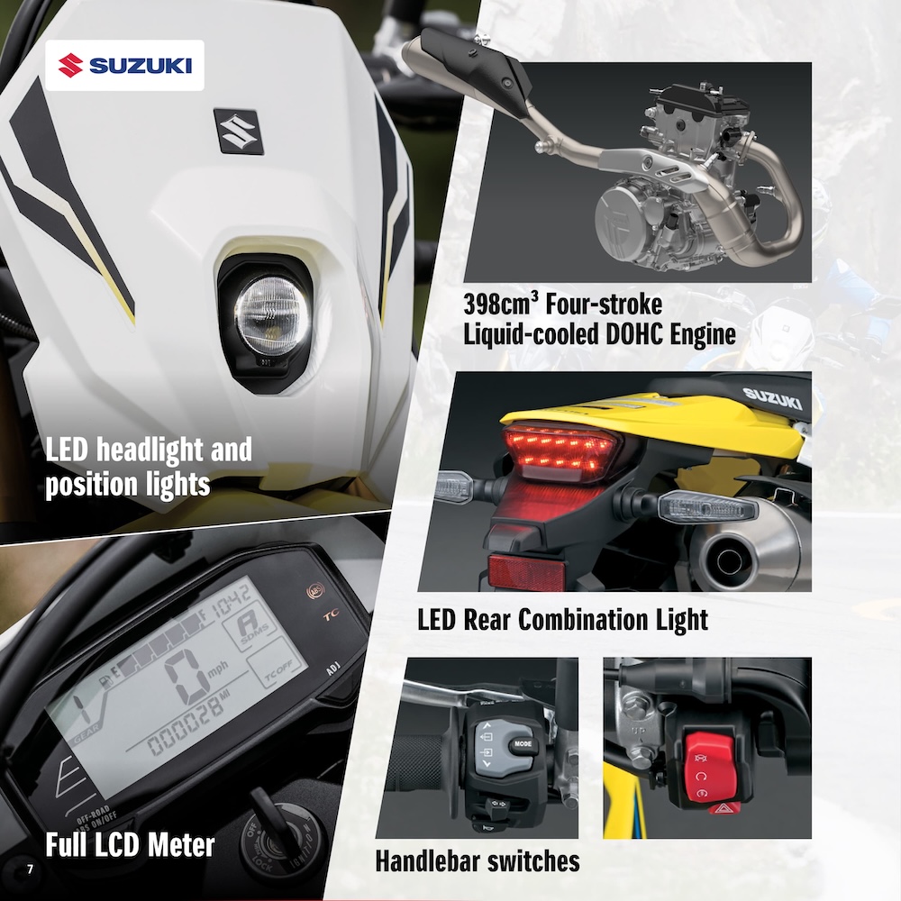 Suzuki mendakwa output kuasa dihasilkan sekitar 37.5hp, yang cukup teguh untuk kategori dual-sport dan supermoto middleweight.