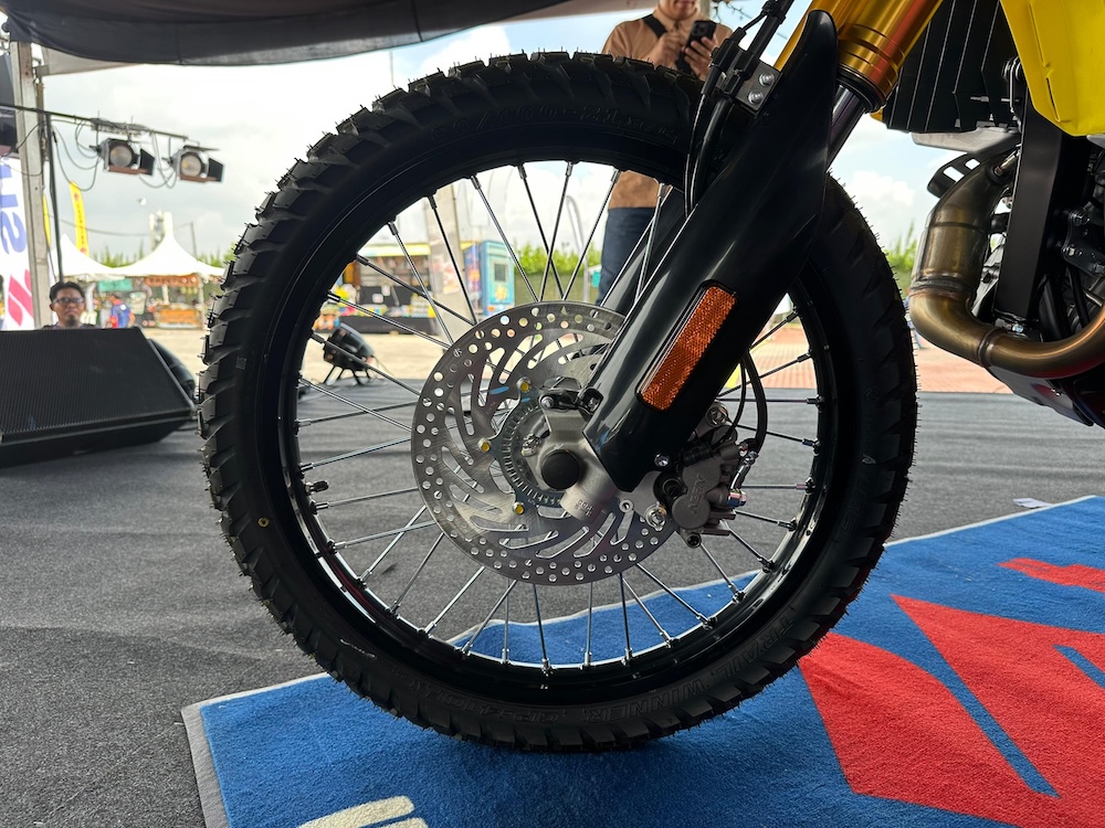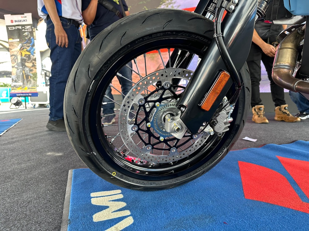 Walaupun nampak hampir sama, tetapan roda membezakan kedua-dua model dengan cukup jelas. Suzuki DR-Z4S menggunakan rim 21 inci (depan), dan 18 inci (belakang), iaitu konfigurasi yang memang sinonim dengan motosikal dual-sport kerana lebih stabil untuk permukaan tidak rata.