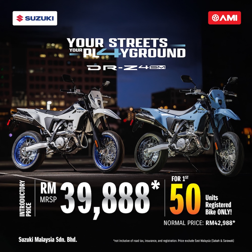 PENGEDAR rasmi motosikal Suzuki di Malaysia, AMI Suzuki Malaysia (Suzuki Malaysia) membawa kembali nama yang cukup ikonik dalam dunia motosikal dual-sport menerusi pelancaran Suzuki DR-Z4S dan DR-Z4SM.