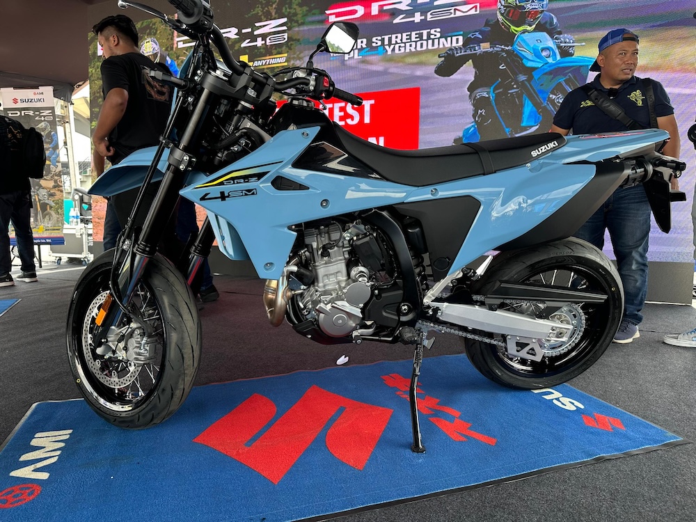Suzuki DR-Z4SM (foto atas kanan) pula hadir dengan karakter lebih sporty dan menyeronokkan. Gaya supermoto dengan pengendalian lebih tajam menjadikan model itu pilihan ideal untuk tunggangan dalam bandar, selekoh berbukit dan sesi tunggangan hujung minggu yang lebih agresif.