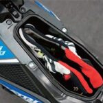- Menggunakan lampu depan LED untuk pencahayaan lebih terang. Juga memiliki ruang simpanan bawah pelana.