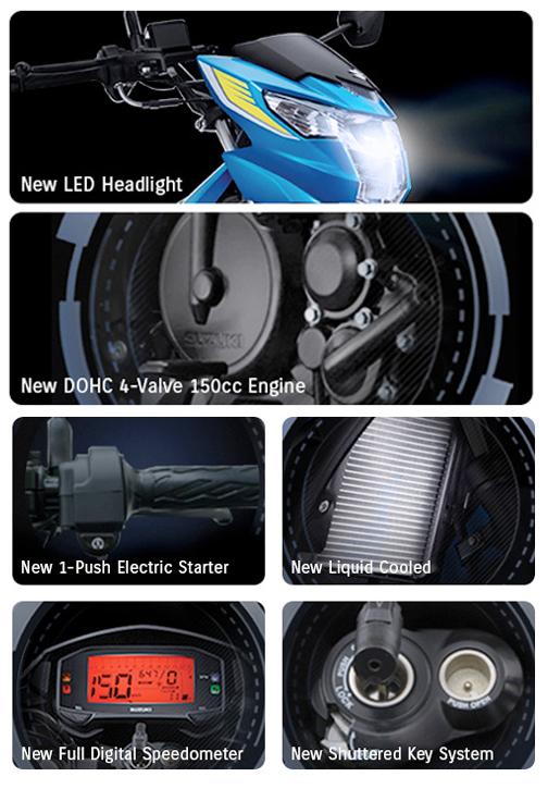 Penampilan Satria F150 berwarna Metallic Triton Blue jelas mengingatkan kepada imej Suzuki GSX-RR yang ditunggang pelumba Andrea Iannone dan Alex Rins daripada pasukan Suzuki Ecstar MotoGP.
