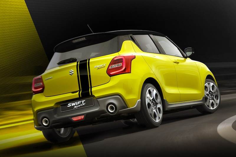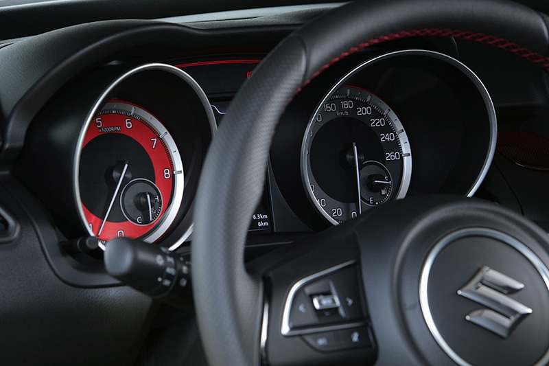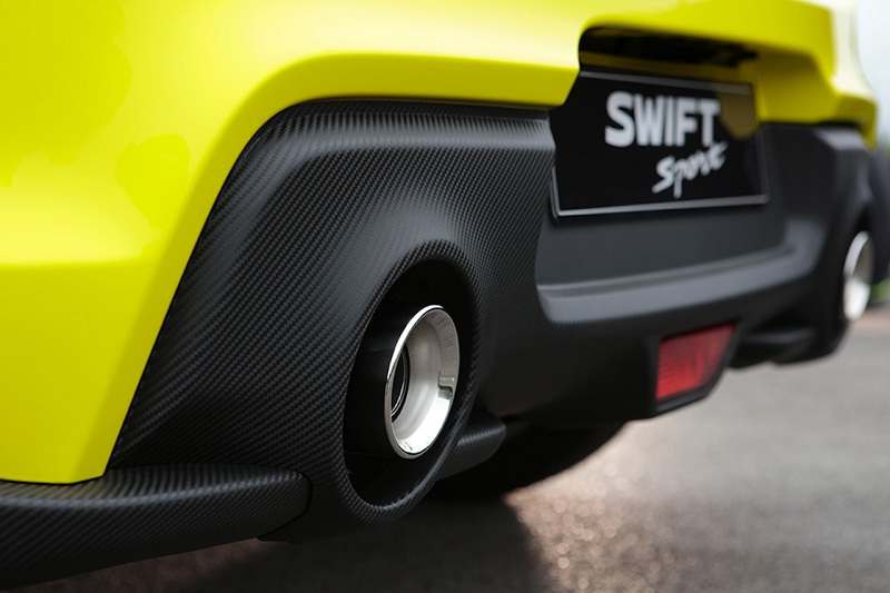 Strip kontras gaya lumba dapat dilihat sepanjang badan kereta bermula bonet depan hingga bampar belakang. Ciri lain adalah sama dengan model asal, Swift Sport dan turut ditampilkan bersama rim aloi dua-tona 17-inci, skirt sisi menarik dan dual ekzos.
