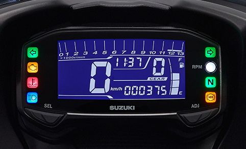 Panel fairing varian merah dan kuning didominasi warna hitam dengan grafik fon Suzuki bersaiz besar. Kedua-dua varian itu menggunakan rim sport hitam, termasuk versi Ecstar MotoGP. Varian serba hitam pula menampilkan rim merah supaya kontras dengan warna badan.