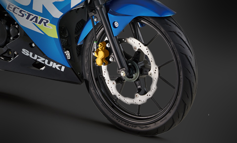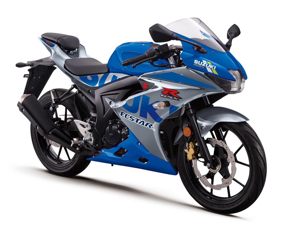 Varian aniversari GSX-R150 mengambil ilham seragam biru-perak pada jentera lumba pasukan Suzuki Ecstar MotoGP. Lencana ‘S’ Suzuki dan R (GSX) pada fairing sisi dan ekor berwarna merah.