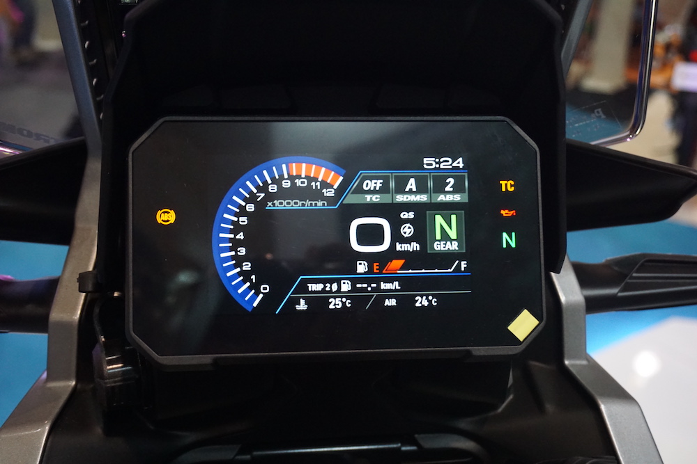 Mod off ABS belakang ditambah untuk meningkatkan kawalan motosikal pada jalan batu atau permukaan tidak berturap.