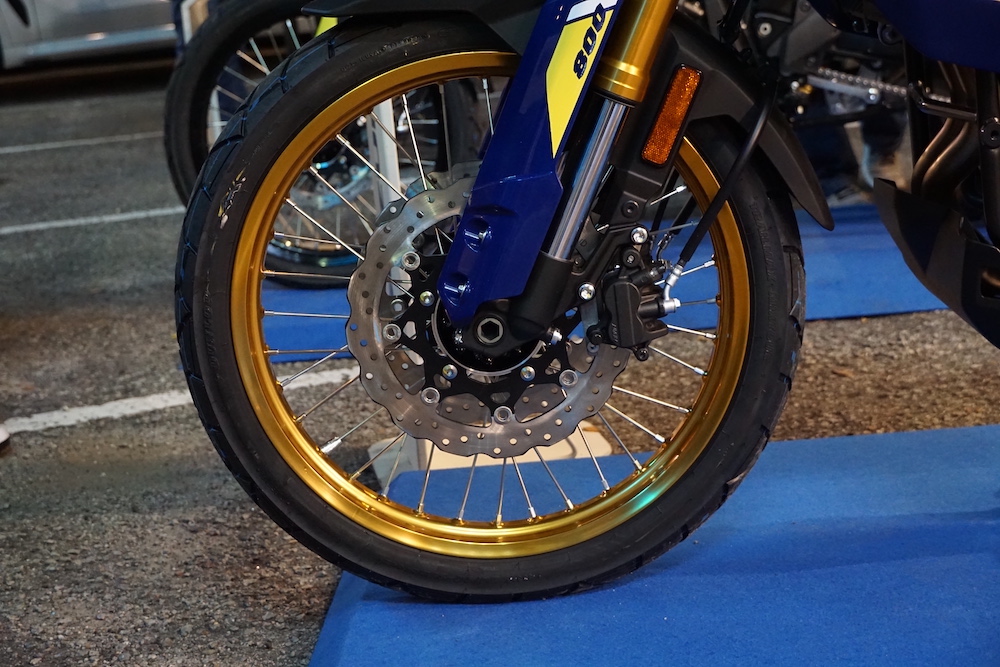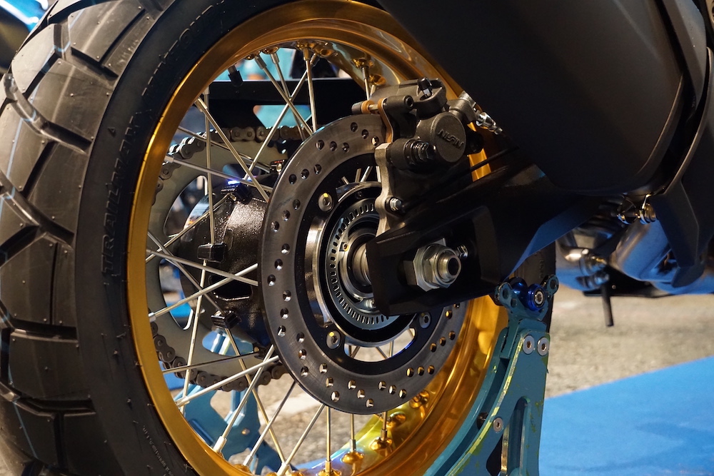 Bahagian roda menggunakan rim jejari 21 inci dengan tayar saiz 90/90 (depan), dan rim 17 inci dengan tayar 150/70 (belakang). Jenis tayar Dunlop Trailmax Mixtour dan bertiub.