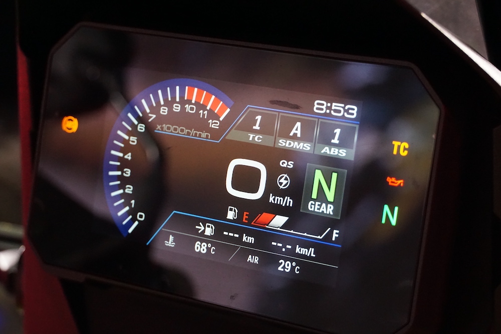 Ada tiga mod tunggang: A (Active), B (Basic) dan C (Comfort). Panel meter TFT LCD digital berwarna 5 inci.