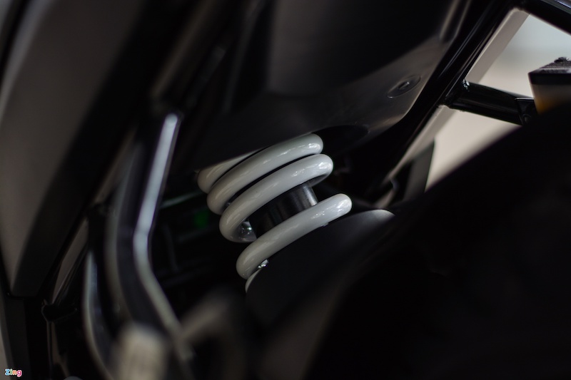- Sistem suspensi dipasangkan fork teleskopik di depan dan monoshock tanpa fungsi laras.