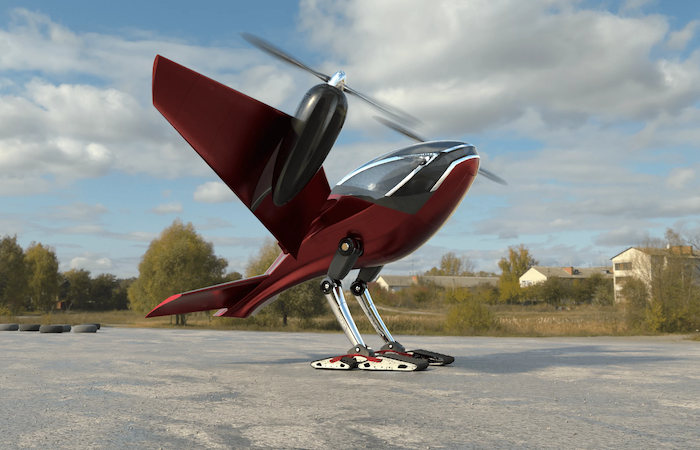 - Teksi udara dengan sepasang kaki dengan tiga sendi (setiap kaki) dan tayar trek seperti kereta kebal.