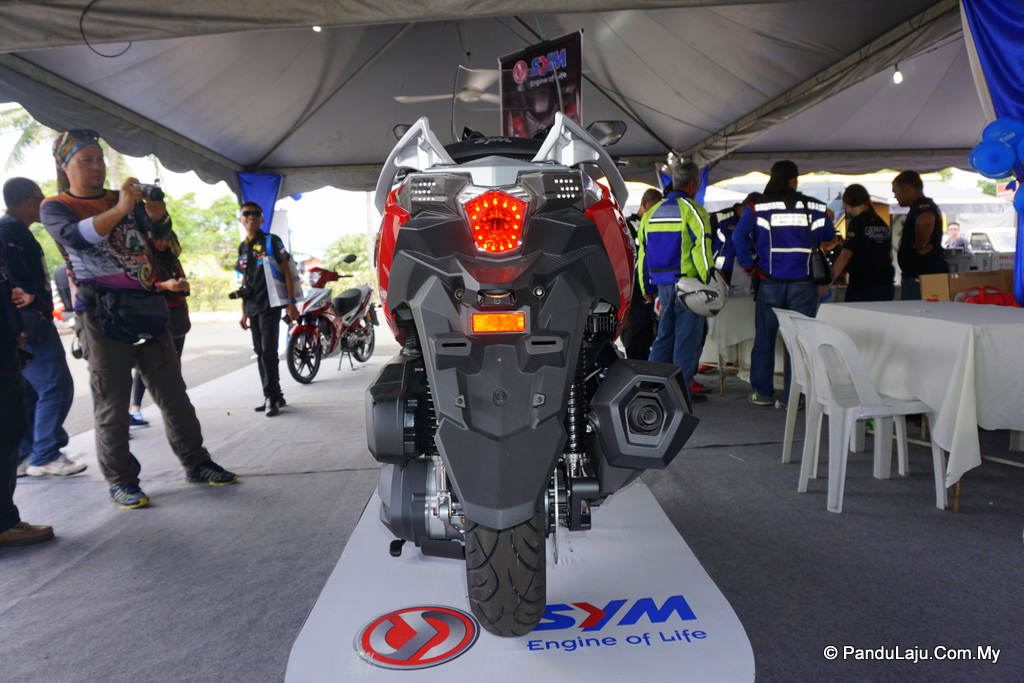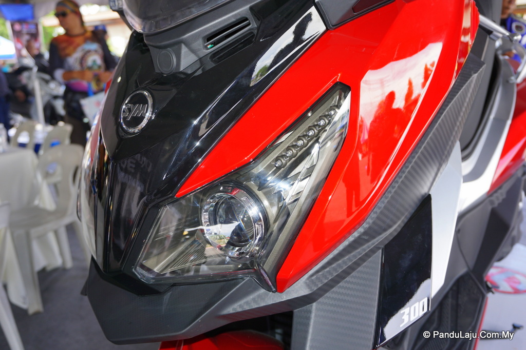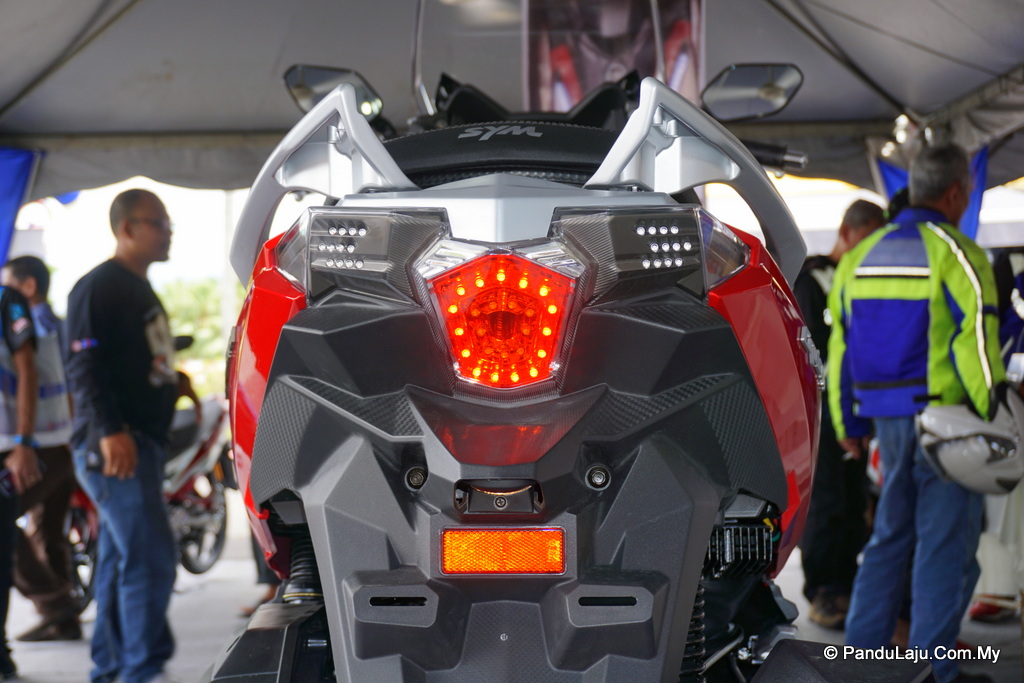 Ia turut menampilkan sepasang lampu ‘fisheye’ yang diilhamkan daripada lampu LED ‘eyebrow’ SYM pada bahagian atas dan lampu belakang berbentukkan heksagon LED dengan 3D.