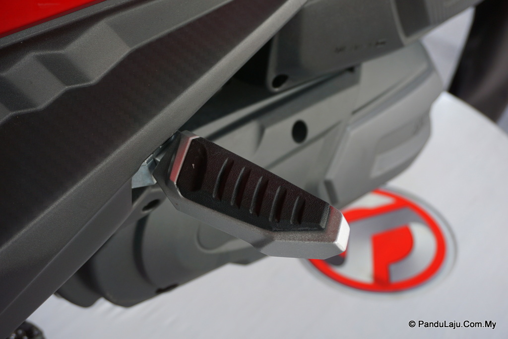 Manakala ruang simpanan di bawah tempat duduk yang besar mampu menyimpan dua unit topi keledar, baju hujan dan barang-barang peribadi lain.