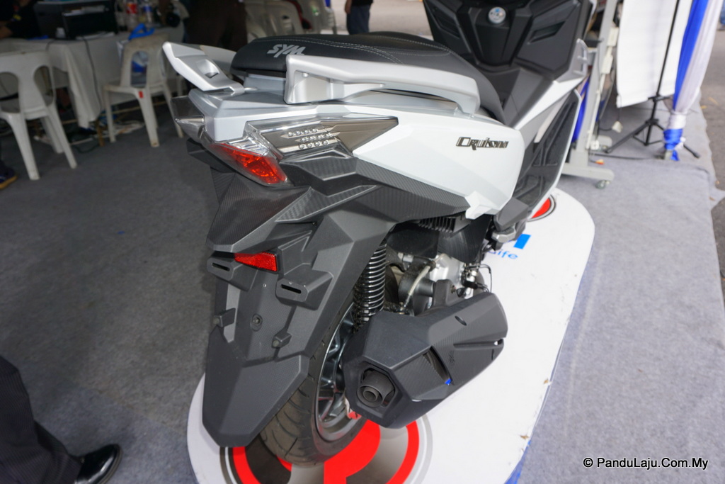 Hadir dengan rekaan futuristik, model skuter itu dilengkapi dengan pelindung bercorakkan ‘carbon fiber’.
