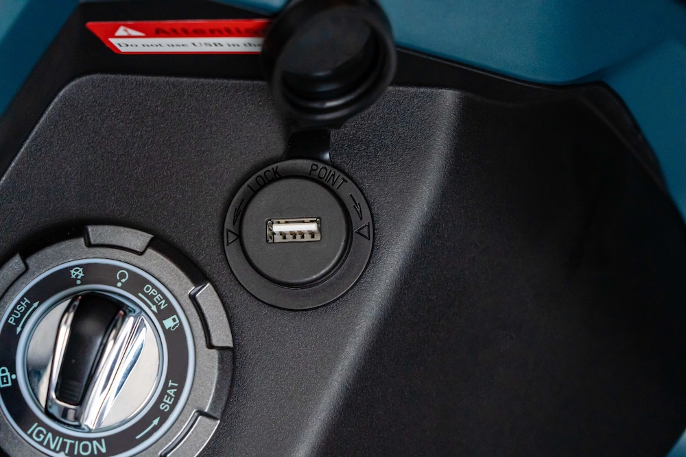 - Instrumen meter jenis TFT berwarna 5 inci. Ada soket USB dan sistem kunci keyless.