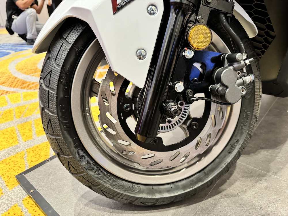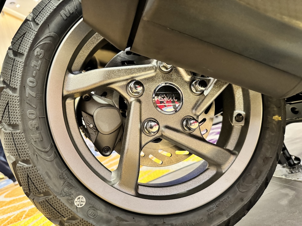- Rim aloi 13 inci dengan tayar depan 120/70, belakang 130/70.