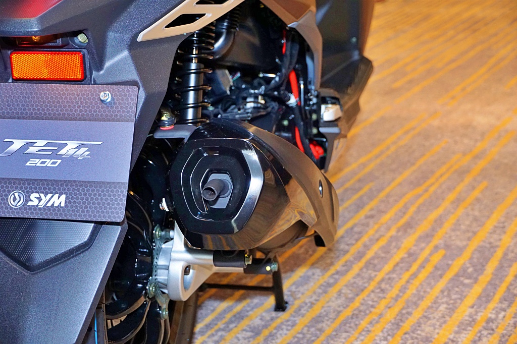 SYM Jet 14 200 dijana enjin 4-lejang silinder tunggal 168.9cc penyejukan udara berkuasa 11.8hp @ 8000rpm dan tork 12.2Nm @ 6,000rpm yang patuh Euro4. Skuter maksi seberat 134kg itu dipadankan transmisi CVT dan mampu mencapai kelajuan maksimum 110kmj.